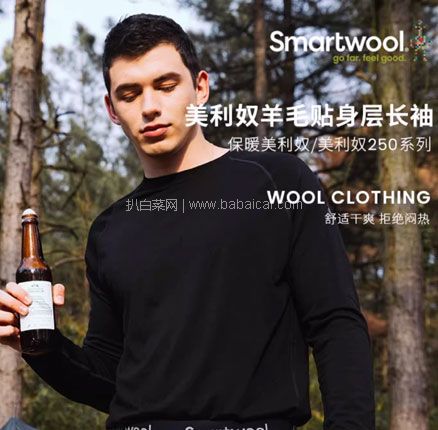美国Smartwool男式经典四季美利奴羊毛打底长袖,免费直邮含税到手¥414.85 最厚的250系列,同款天猫旗舰店双十一预售仍需¥1254