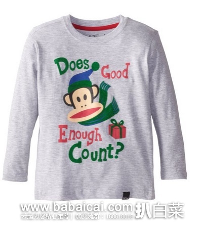 这款Paul Frank Little Boys' Julius Good Enough Long Sleeve Shirt送礼物的大嘴猴长袖体恤,简约又独具风格,很不错哦。原价$20,现仅$7.18,5岁和6岁尺码有货。亚马逊购买地址>>