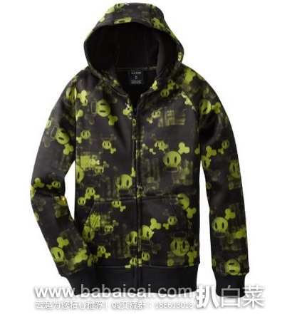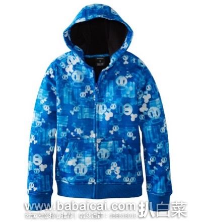 还有这款Paul Frank Boy's Skurvy Fade Bondtech Fleece蓝色骷髅头的大嘴猴帽衫卫衣,2色可选,鲜亮的蓝色和小深沉的黑绿配色,都很适合男宝,原价$60,现蓝色仅$23.59,黑绿色$26.21。亚马逊购买地址>>