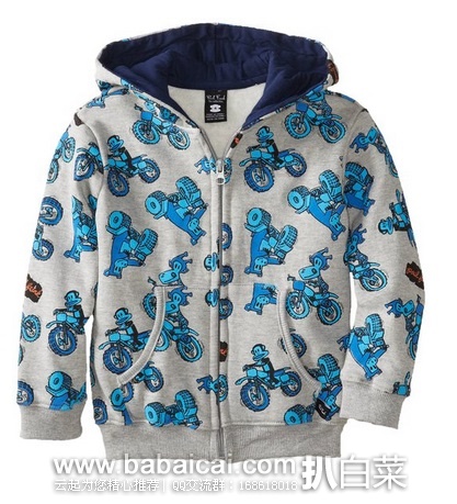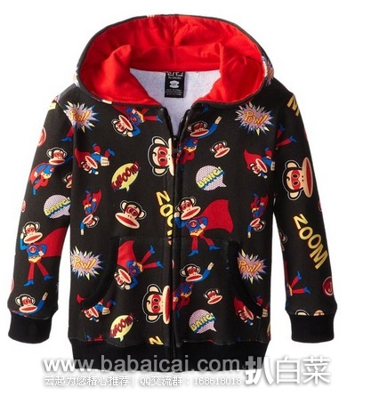 这款Paul Frank Little Boys' Motor Cross Hoodie骑摩托车的大嘴猴帽衫卫衣,显得非常活泼可爱。原价$44,现价$27.55,仅6岁尺码为自营。亚马逊购买地址>>