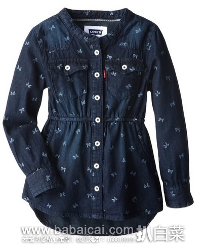 16、Levi's Little Girls' Daphne Button-Front Bow Shirtdress,女孩牛仔长袖裙子衬衫特价$22.76,2-6X尺码有货
