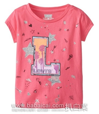 12、Levi's Little Girls' Graphic Tee 女孩西瓜红色L图案短袖体恤特价$6.38,2-4岁尺码有货。