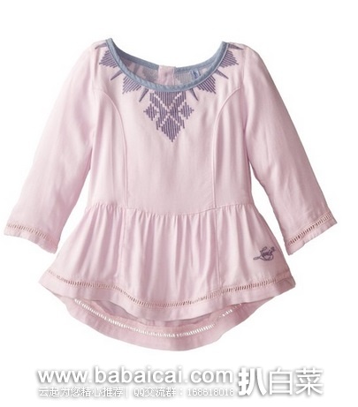 11、Levi's Little Girls' Patricia Peasant Top,女孩淡粉色裙摆式纯棉长袖T恤特价$9.85,4-6X尺码有货