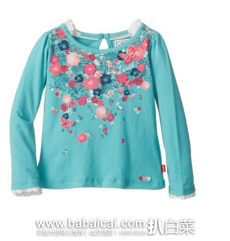 1、Levi's Little Girls' Alexis Knit Top,女孩绣花图案湖蓝色纯棉长袖T恤特价$12.53,2-4岁尺码有货。