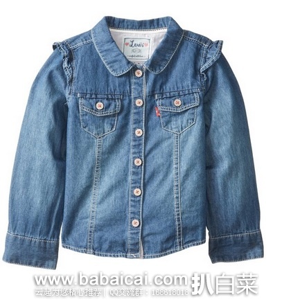 15、Levi's Little Girls' Terri Denim Button-Front Shirt 女孩牛仔外套特价$13.3,2-4岁尺码有货。