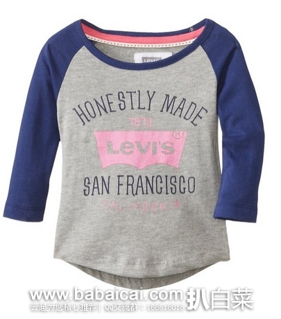 7、Levi's Little Girls' Rhiannon Raglan Shirt 女孩灰蓝配色纯棉长袖体恤特价$8.34,2-4岁尺码有货。
