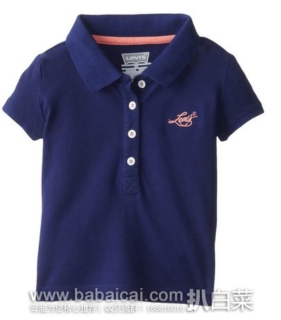 10、Levi's Little Girls' Shore Bound Polo Shirt,女孩绣标深蓝色polo衫特价$8.58,2-6岁尺码有货