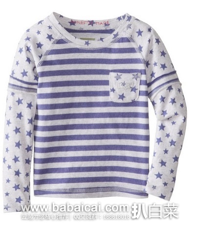 9、Levi's Little Girls' Riley Raglan Knit Top 女孩星星图案棉长袖T恤特价$14.54,2-6X尺码有货