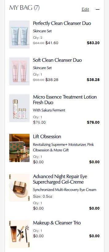 0、由于雅诗兰黛购物车系统升级,赠品数量可能不显示,请看购物车总数量(shopping bag)