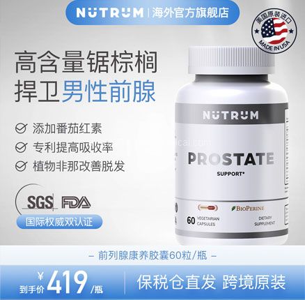 天猫国际Nutrum海外旗舰店售价¥631,下单立减¥252,叠加¥300优惠券,券后实付¥79包邮包税。美国进口,男性健康的守护神,从此告别前列腺烦恼。天猫国际购买地址 >>