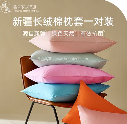 白菜!韩香家纺 全棉磨毛/摩卡缎天丝磨毛枕套 一对装 48*74cm 券后新低¥¥11.9元包邮    手感更细腻、更轻柔、孕妇、宝宝都可以安心睡眠~