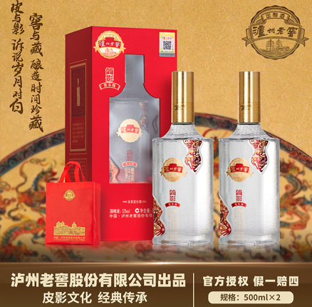 这款泸州老窖定制酒 简影·饮东海 52度浓香型白酒500mL*2瓶礼盒装,是一款以中国传统民间艺术—皮影戏为主题的定制酒,延续泸州老窖经典工艺传承,精选优质原料,匠心酿造,酒质醇厚,酒线细长,清洌干爽,饭后尤香,回味悠长。