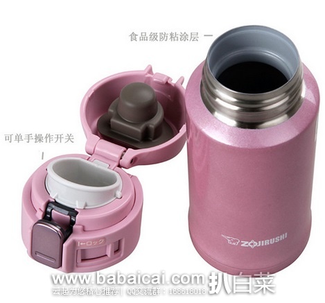 这款Zojirushi SM-PA30PA Stainless Steel Travel Mug, 10-Ounce/0.30-Liter, Pink象印SM-PA30PA系列不锈钢旅行保温杯 粉色款300ml,不锈钢真空保温,防粘涂层内胆,附有安全锁,防止盖子意外打开。