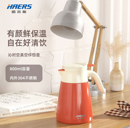 Haers 哈尔斯 LK-800-21-A 真空保温壶 800mL,三色可选,券后¥29元包邮 高颜值保温壶,304不锈钢内胆,12h保温保冷~