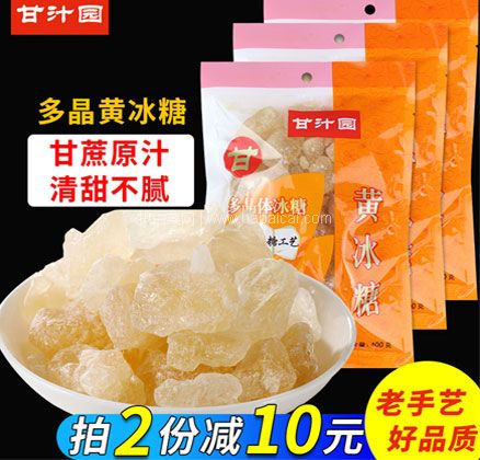 目前天猫商城帆船牌旗舰店600g袋装售价¥23.9,官方9折,叠加¥7优惠券,实付¥14.5包邮。32年专注古法制糖,誉满香港,属于香港星级餐饮用糖,星级餐饮纯正冰糖,安全认证!口感体验:传统工艺,甜度适中,炖品绝配。 天猫商城购买地址>>