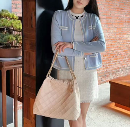 秦岚同款Tory Burch奶油色垃圾袋包,采用软乎乎的羊皮材质,充满香香垃圾袋的松弛感,是妥妥的香奶奶平替。直达链接>>