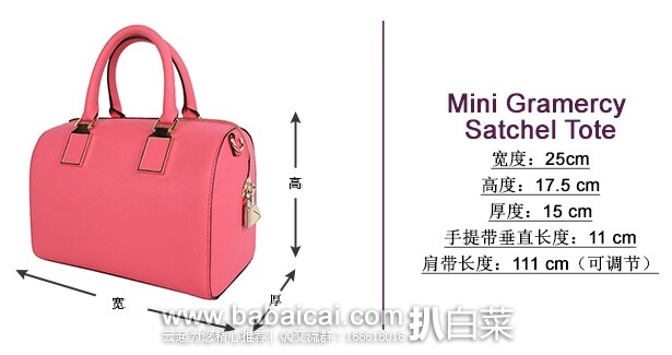 2015年早春新款Rebecca Minkoff Mini Gramercy Satchel Top Handle Bag波 士顿包肩背手提两用包,人见人爱的小巧Boston款,款式百搭,采用意大利进口十字纹牛皮,细节精致,造型经典,不大不小,款式高雅大方讨喜,可拆卸长 肩带,包身有金属LOGO镶嵌,顶部闭合拉链确保内部物件安全,内置多个口袋,包内有防尘袋。很适合作为平时上班、逛街等使用。
