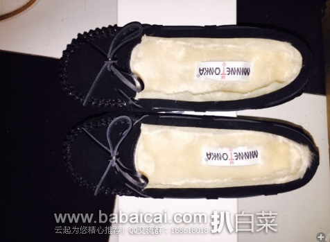 白菜!Minnetonka 迷你唐卡 女士加绒经典莫卡辛鞋黑色历史新低$18.42 到手¥184