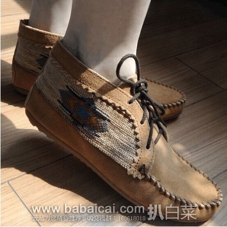 Minnetonka 迷你唐卡 El Paso 纯手工女士绣花休闲鞋原价$50,现特价$36.71