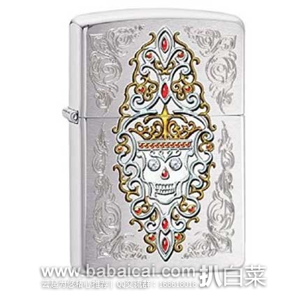 3、Zippo Pocket Lighter Brushed Chrome Jeweled Skull Pocket Lighter芝宝 Jeweled Skull 打火机,目前特价$18.54,宝石镶嵌工艺,超低折扣,可直邮中国;亚马逊购买地址>>