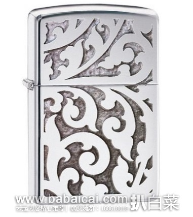 8、Zippo High Polish Chrome Filigree Windproof Lighter镂空雕刻图案打火机,特价$17.41,可直邮,表面高抛光,镂空雕花,磨光和镀银持久耐用。亚马逊购买地址>>