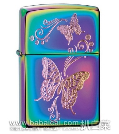 9、Zippo Butterflies Pocket Lighter彩蝶图案打火机,特价$18.41,可直邮。亚马逊购买地址>>