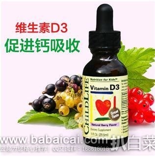 2、ChildLife 维生素D3补充液 浆果味(ChildLife, Essentials, Vitamin D3, Natural Berry Flavor, 1 fl oz 29.6 ml)