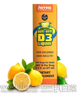 7、Jarrow Formulas 维生素D3滴剂 柠檬味道(Jarrow Formulas, Yum-Yum D3 Liquid, Lemon Flavor, 0.9 fl oz 27 ml)