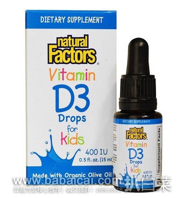 4、Natural Factors 儿童维生素D3滴剂 (Natural Factors, Vitamin D3 Drops for Kids, 400 IU, 0.5 fl oz 15 ml