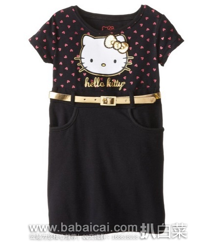 10、Hello Kitty Little Girls' Knit French Terry Dress with Faux-Leather Detail现特价$9.6,仅2岁尺码。亚马逊购买地址>>