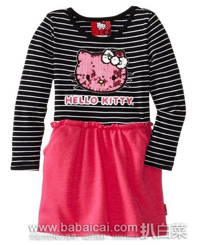 9、Hello Kitty Little Girls' Sequin Applique Striped Dress现特价$10.47,2-4岁尺码可选。亚马逊购买地址>>