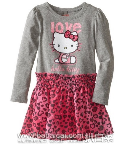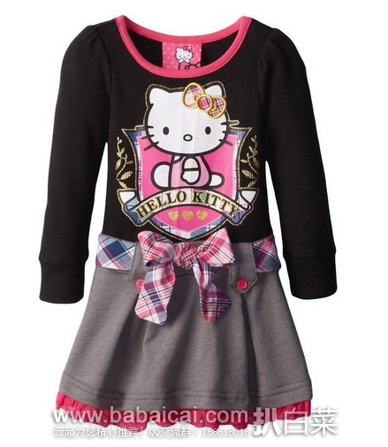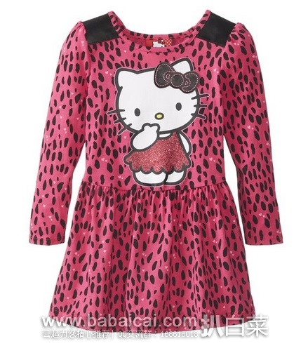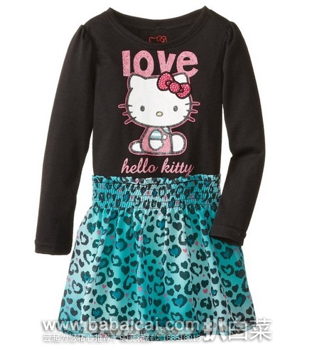 7、Hello Kitty Little Girls' Long-Sleeve Knit Dress with Animal Print Skirt现特价$9.75,仅2岁尺码。亚马逊购买地址>>