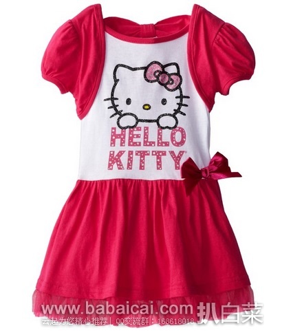 8、Hello Kitty Little Girls' Cap-Sleeve Mock Shrug Dress现特价$10.2,仅2岁尺码。亚马逊购买地址>>