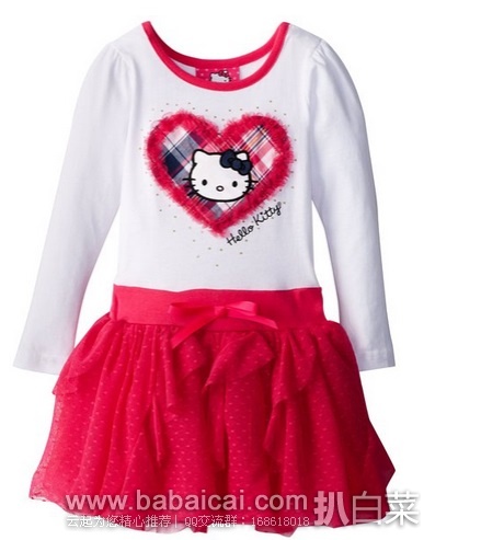2、Hello Kitty Little Girls' Long Sleeve Tulle Dress现特价$10.89,2-4岁尺码可选。亚马逊购买地址>>