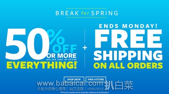 Carter's卡特童装官网目前全场5折封顶,还可叠加满$40额外8折优惠码MARCART,且免境内运费,折后很多好价,北京时间3月31日下午3点结束。注意,DOORBUSTERS和CLEARANCE的商品,Carter's是从来都不能用码的,如果优惠码不能用,先检查一下是不是加了这类商品。。Carter's官网活动地址>> | 卡特官网最新购物教程>>