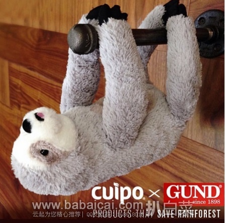 Cuipo Steve Sloth 树懒毛绒玩具,尺寸约23厘米,Steve可是懒癌重度患者哦,双手一缠绕,就可以安安静静地待上一天,比比谁更宅哦。柔软舒适的毛质,Gund出品,可放心给孩子玩耍。也可以适合爱宅的宅男男女哦。