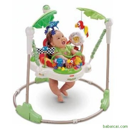 一个充满色彩和声音的地方---费雪牌蹦跳欢乐园为小小探险家们带来了适合他们的无穷乐趣!更多的非常安全的弹跳乐趣(会启动音乐和灯光呢),在雨林的周 围和头顶上有很多的玩具,一个旋转椅帮助宝宝能够更好的探索这一切。宝宝跳跳乐被可爱的大象,荡秋千的猴子,旋转的蜥蜴和其它一些能让宝宝“撒野”的玩具 包围着!宝宝敲敲小鼓就可以启动音乐和灯光(妈妈可以启动连续播放4分钟的键)。宝宝跳跳乐的弹簧护套让小手指更安全,3档高度调节可以确保适合您的宝 宝。安装蹦跳欢乐园需要大约宽81cm,长94cm的空间。