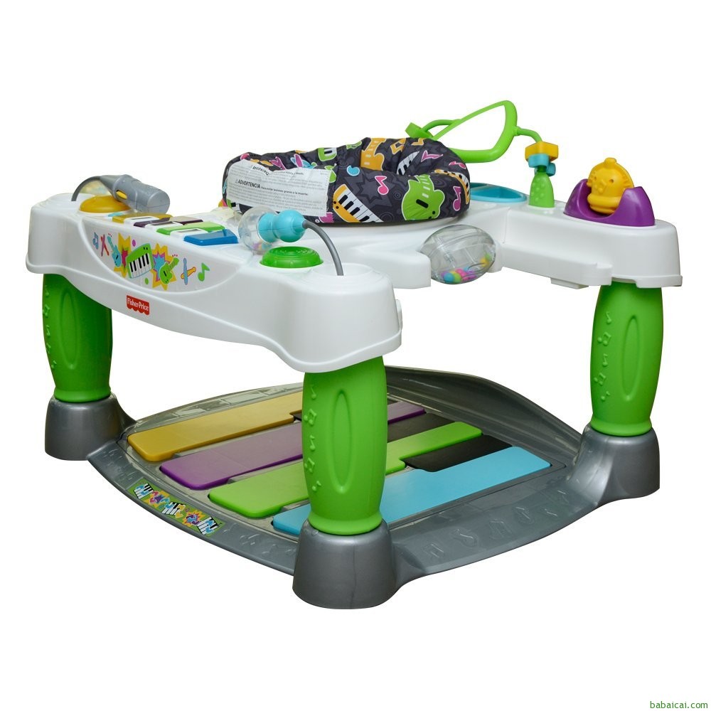 Fisher- Price 费雪 豪华钢琴活动乐园 V4357,可伴随宝宝从婴儿阶段至学步阶段,为各个年龄阶段提供独特的音乐体验,在这个可360°旋转椅子里,宝宝能够探索音乐乐趣和各种功能,当宝宝 可踉跄走路时,可凭借椅子的支撑在乐园里前后走动,一旦宝宝能够独立行走,就能移除椅子,宝宝能在乐园内自由走动。集合各种趣味歌曲,声效和灯光游戏,让 宝宝能够与不同的乐器互动,最大限重22公斤。