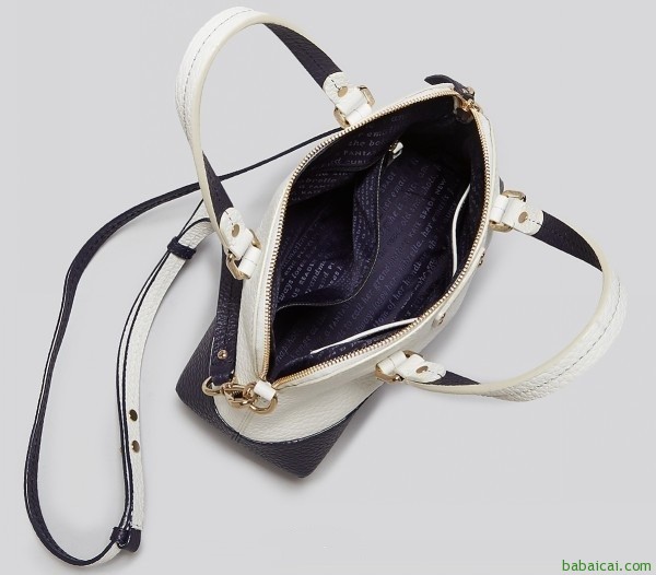 Kate Spade New York Grove Court Maise Top Handle Handbag凯特丝蓓女士单肩包,采用100%柔软精致的荔枝牛皮撞色设计,所有五金件均经过14K镀金处理,定制斜纹竖条纹印花里衬,内部拉链口袋层和2个分类侧袋,可调节拆卸斜挎背带,顶部拉链口袋,磁吸封口,外形尺寸30.5 x 23 x 12.5cm,类似贝壳包造型,大小适中可背可提,实用性很强。