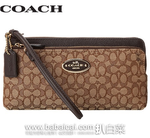 COACH Signature Double L-Zip Wallet,采用特制帆布面料,皮革镶边,包面上印有COACH 金属LOGO,拉链口袋开合,内设有3个主现金隔袋,6个信用卡卡槽,以及1个多功能袋,适合平时使用。