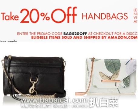 Amazon:精选多款自营品牌包包额外8折优惠码现身,有效期到北京5月11日15点