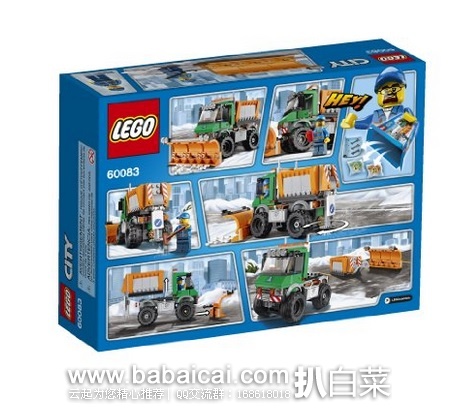 15、LEGO City Great Vehicles Snowplow Truck ego 乐高 60083 城市系列 扫雪卡车(196颗粒)原价$20,现史低$15.59,直邮无税,运费仅$4.52 到手¥123。适合四五岁以上的小朋友。产地丹麦。亚马逊购买地址>>