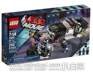 9、LEGO Movie Bad Cop Car Chase Block,LEGO 乐高 70819 大电影系列 坏警察飞车追逐 共292颗粒 原价$30,现新低$23.45,直邮无税,运费仅$4.91,到手¥176,适合7-14岁儿童玩耍。亚马逊购买地址>>