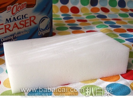 Mr. Clean Magic Eraser Cleaning Pads, 8-Count Box朗白先生神奇清洁海绵8块装,每片尺寸为11.8*6.1*2.6厘米,作为美亚全能清洁品类销量第一的产品,其神奇之处在于清洁时只需要湿水即可,无需其他清洁剂,不伤手,无异味,且清洁去污能力非常强,适用于墙面,地板,门板,或是厨房清洁等等。当然,还有你的爱车车轮,或是不小心弄脏的鞋子。简直就是全能清洁小助手。只想借用一句话:这是一块神奇的海绵!需要提醒的是:不建议使用在高抛光,打磨木制家具或是带有涂层的汽车表面。使用方法:先打湿,再清洁,一块可多次反复使用,直至海绵扁塌。