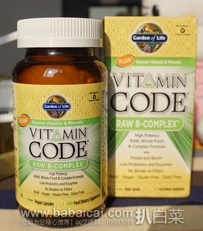 Garden of Life Vitamin Code Raw B-Complex 120 Vegan Caps,生命花园全食物素食B族复合维生素,富含益生菌活性酶果,完全的食物提取,也不需要随餐服用,什么时候都可以吃。不含任何奇怪防腐剂,Garden of Life的所有产品都不是人工合成的,虽然比其他大多的维生素产品价格要高,但是能够获得人体所需要的源自天然健康食物的营养素还是很值得的。每日2粒。可与食物一道服用,也可单独服用。胶囊可以打开,内容物可以与水或原汁一道服用。