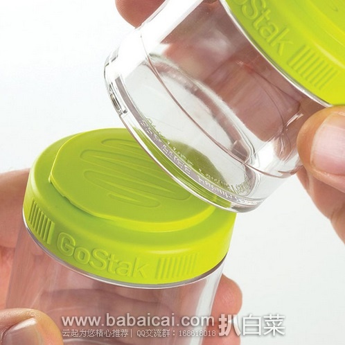 GoStak品牌的密封盒有多种大小组合可供选择,满足大家不同需求。这款包括150cc、100cc、60cc和40cc的密封盒各1只,圆滑的 造型,盒子材质很好,没有异味,采用7号塑料(最高品质),结实,耐用,密封性能良好,能稳妥的保存你的食物可以储存任何日常食物,包括液体,非常方便卫 生,外出游玩,野餐,聚会也是非常实用的,随身携带也很方便。出去玩儿给宝宝带点小零食或者奶粉,也非常不错。专利连接上锁系统,四个大小不同的盒子可以 拆分下来,也可以连接锁成一个整体。这是一款充满智慧的便携储物盒,非常喜欢它的这个可扩展性的设计,就是可以储物盒与储物盒可以链接成一长串,不分头 尾,然后随便往哪里一放或挂起来,都可以,很节省空间。外出带着也方便。