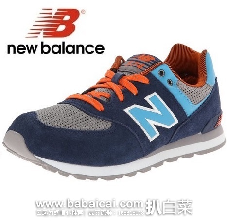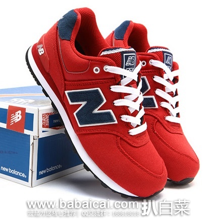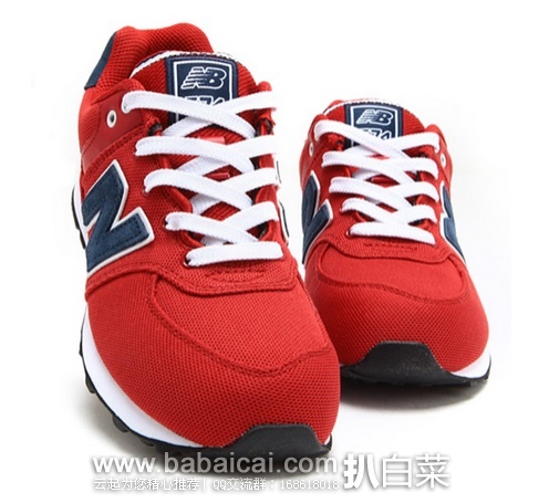 New Balance 新百伦 KL574 复古鞋大童款红色特价$35.96,蓝灰色特价$49.98,都是好价
