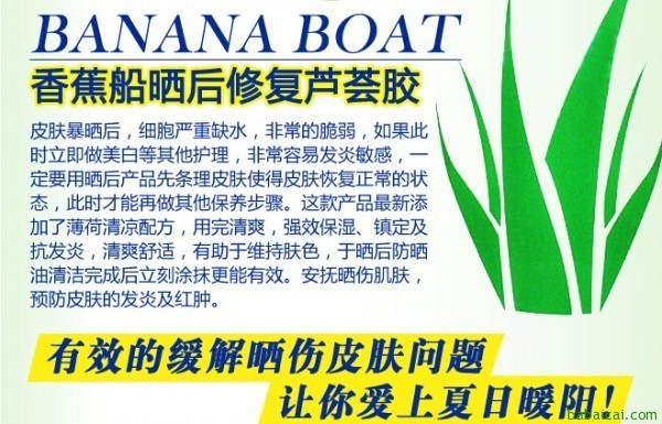 Banana Boat香蕉船 隶属Playtex公司,是专业的防晒品牌,在美国的销售额仅次于水宝宝,也是质量可信的防晒品牌。