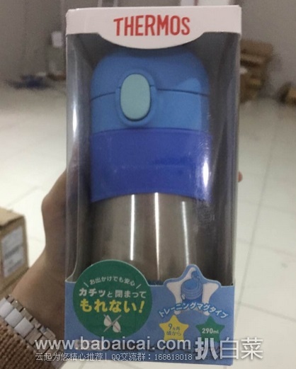 这款サーモス 真空断熱ベビートレーニングマグ FFH-290TM ブルー膳魔师真空不锈钢儿童保温吸管杯,重量:240g;容量:290ml;口径:54mm;杯身:进口304不锈钢材质;杯盖:食品级PP材质;密封圈:食品级硅胶材质;保冷性能:6 小时12度以下。9个月以上宝宝可用。这款是没有吸管的直饮训练杯,建议放45度以下热水,给宝宝饮用之前请家长一定要自己试一下,以免烫伤宝宝。包装上的保冷专用标识是为了提醒大人不要放过热的水,保温保冷皆可。