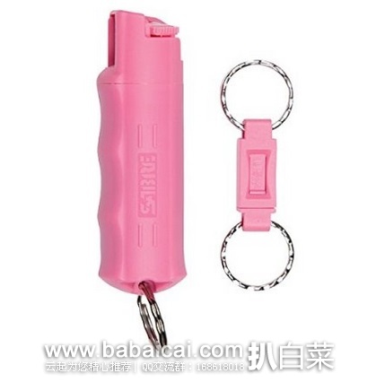 此款SABRE RED Pepper Spray - Police Strength 型号 HC-NBCF-01,分为黑色、粉色两个配色可以选择,带有一个钥匙扣作为伪装,每支含0.54盎司喷雾,大约可以喷25次左右,遇到坏人尽量在10英尺范围内效果喷射,以达到最佳效果,可连续喷射,保质期长达4年之久,对于经常一个人外出的可以入一个备用。